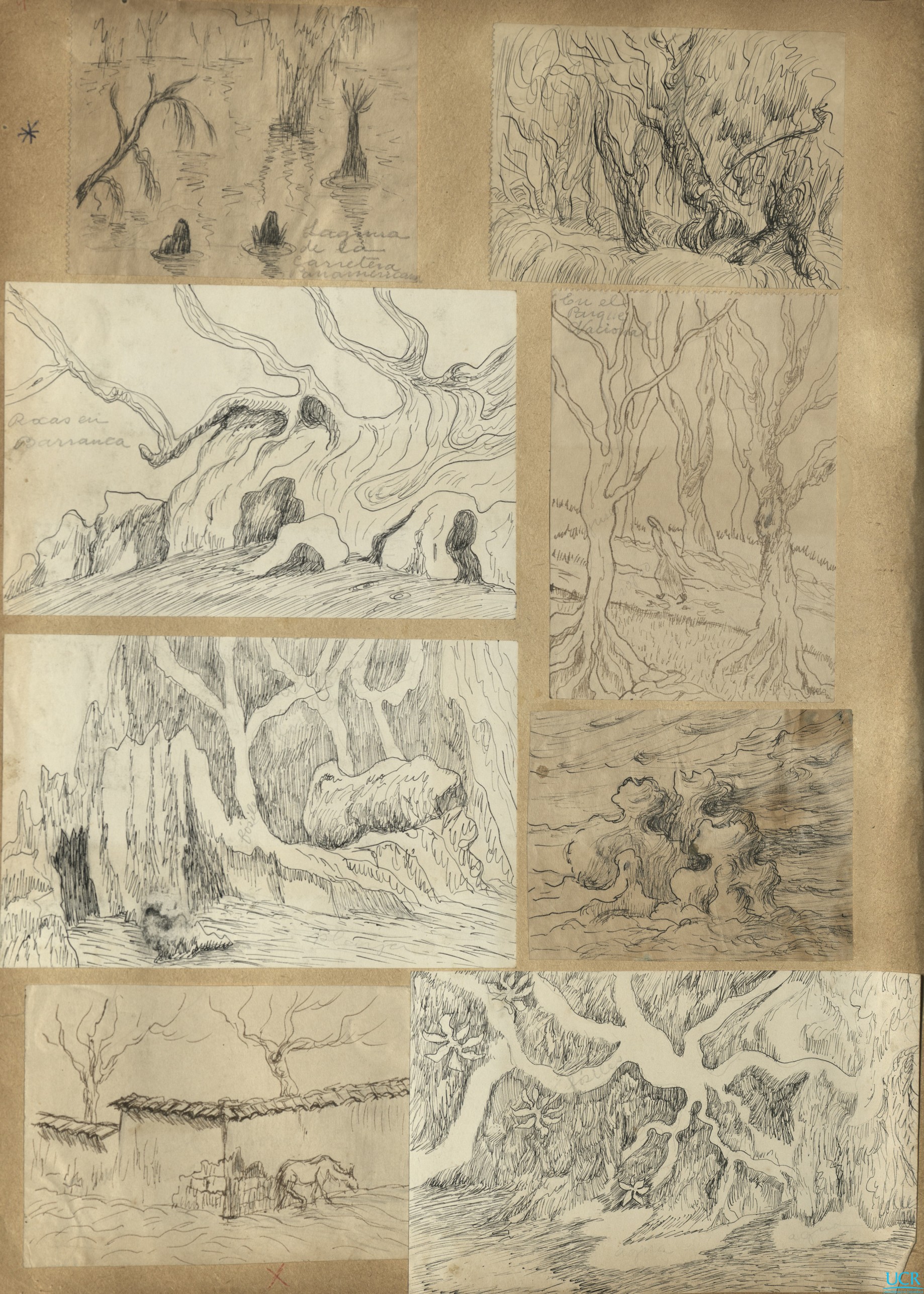 Amplia colección de bocetos con múltiples temáticas realizados por la artista a lo largo de varios años.