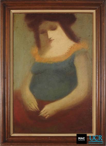 | dc.description | Retrato femenino de formato vertical con actitud meditabunda con la mirada baja, parece observar sus manos, posadas sobre su falda, que es roja. | es |