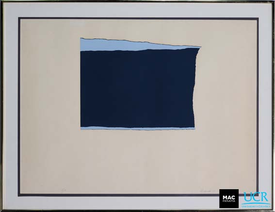 dc.descriptionObra abstracta de formato horizontal y fondo blanco hueso con mancha central rectangular azul oscuro de bordes superior e inferior azul claro.es